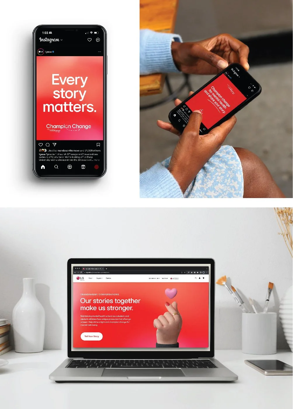 Students should feel empowered to lead conversations on mental health and make a real impact, with LG enabling greater awareness and facilitating those conversations. Taking influence from sports lingo, Champion Change captures the courage and potential every student has to make their home campus a healthier place.