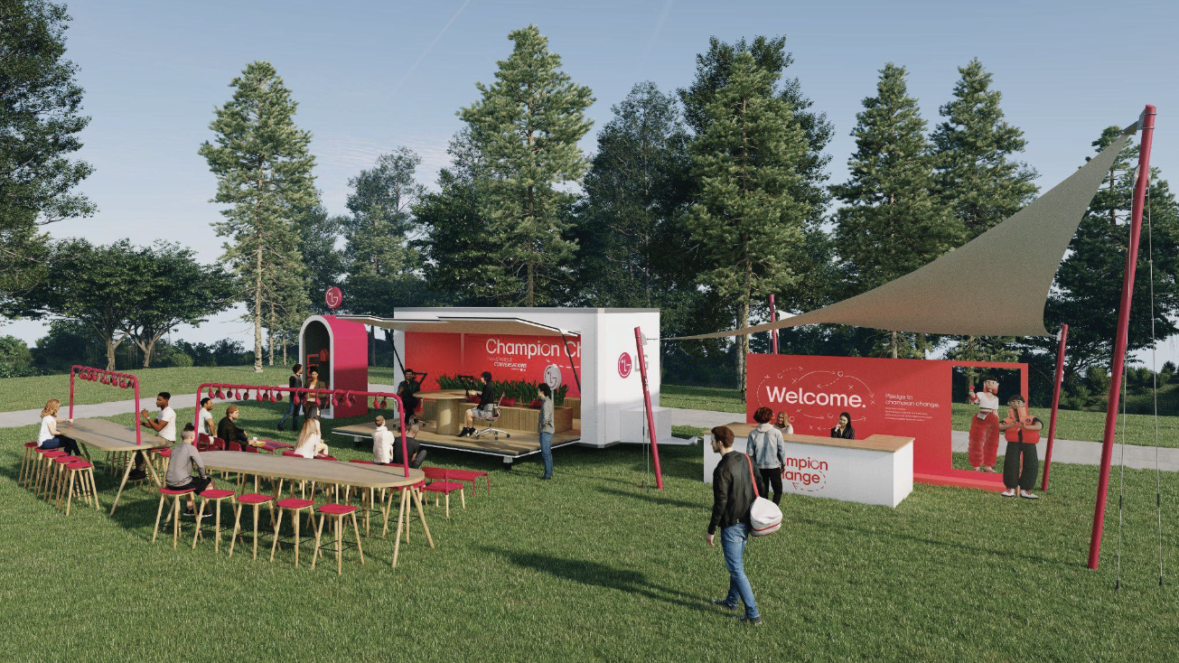 We’re bringing LG’s illustrative brand characters into the physical world in this series of unique signage that welcomes students and gives LG a human presence. The custom-designed wall encourages students to take the Champion Change pledge and make a difference their own way. Join LG’s positive, love-emitting characters for a unique photo moment — the perfect way to share the pledge, show your commitment, and inspire others.