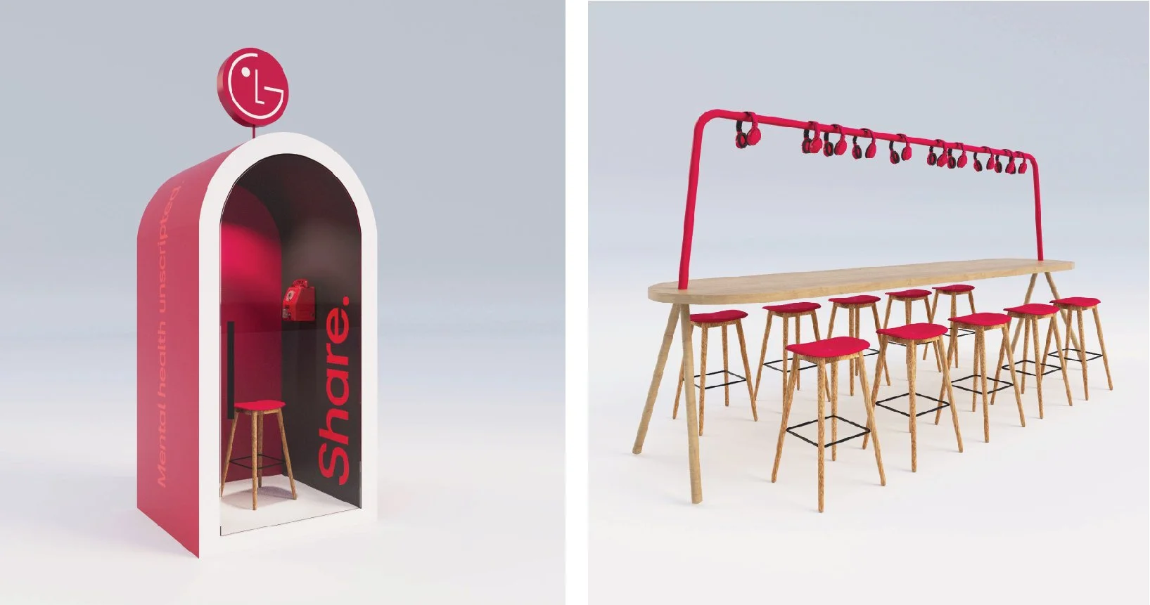 The phone booth is powered by the magic of storytelling. Continuing our mission to give everyone a platform to share their experiences and learn from others, this special booth lets students record their own stories, or listen to others’. Recorded content can be curated and featured on the podcast, as well as made available on the microsite to showcase LG’s commitment to authentic stories from real students.