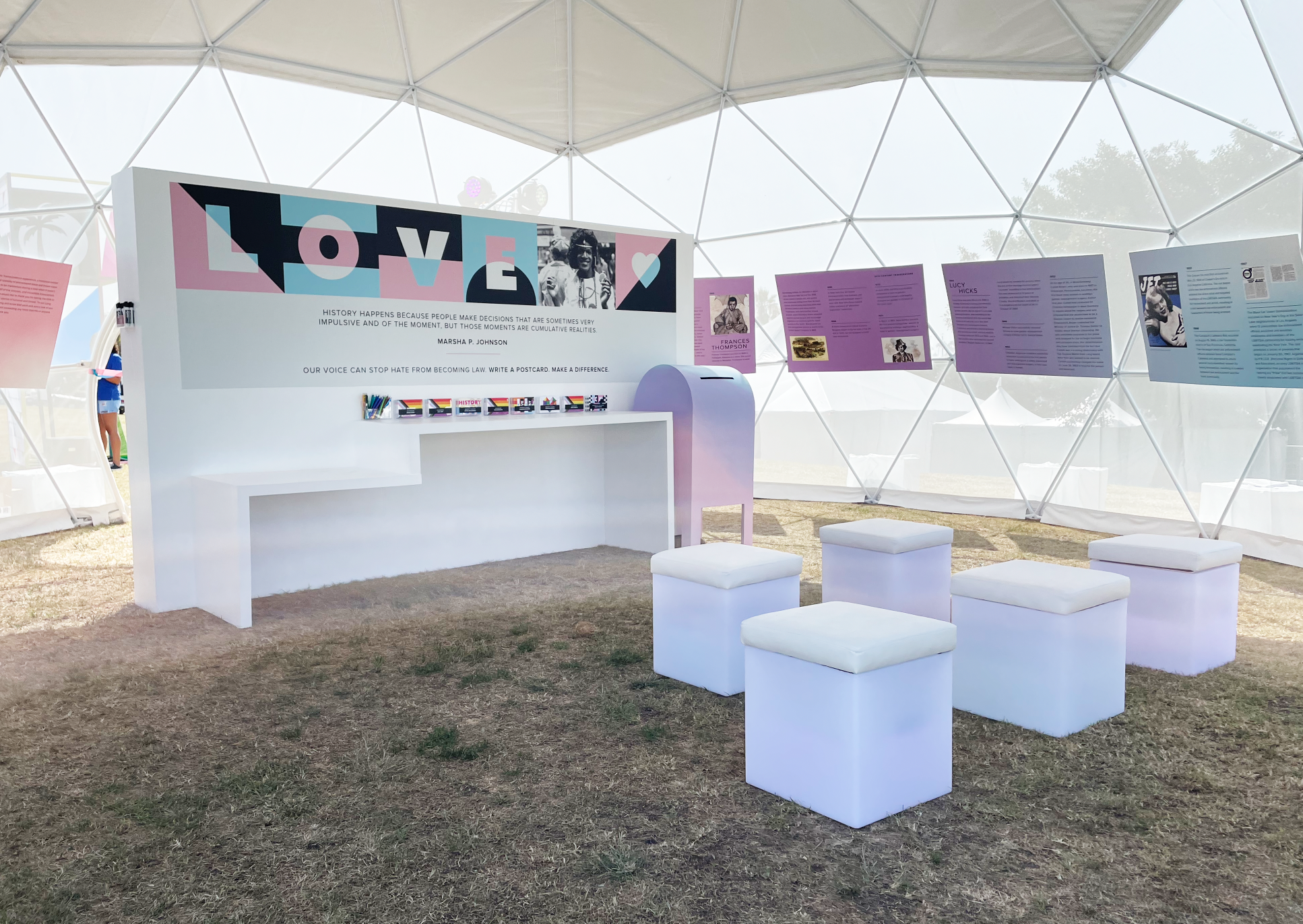 Created in collaboration with trans rights activist icon Mallery Robinson, this dome was part museum, part action station, telling the story of trans women’s fight for equality and empowering visitors to help continue the fight.