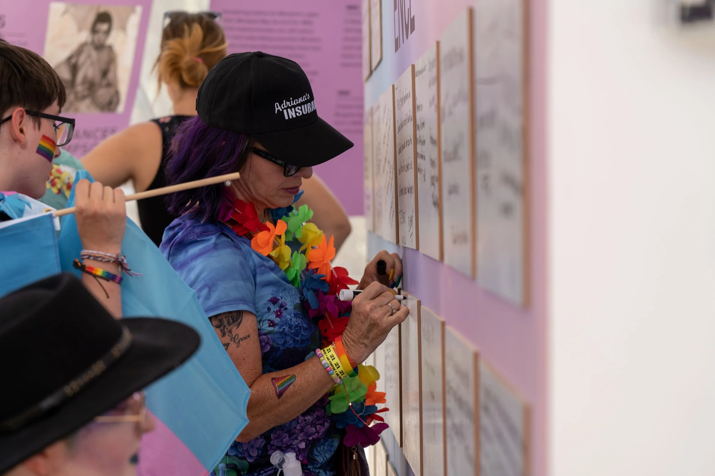 The Voices Wall let anyone leave messages of love and support for the community, while a postcard writing campaign sent nearly a thousand custom designed, handwritten messages to lawmakers in states passing anti-trans legislation.